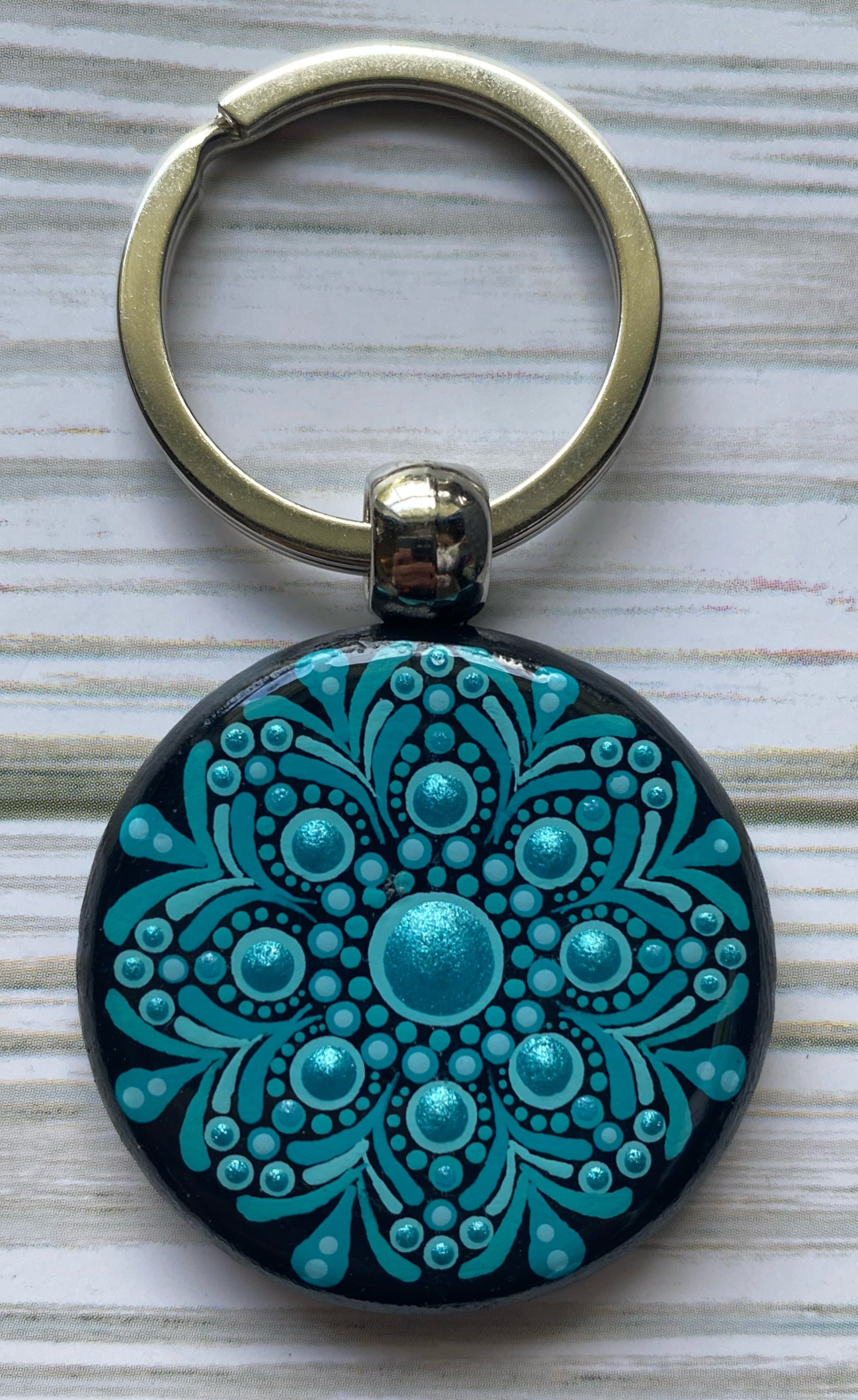 Add a touch of unique style to your keys with our hand painted teal mandala wood keychain. Made from high-quality wood, each keychain is carefully crafted and painted by hand for a truly one-of-a-kind design. Elevate your everyday essentials with this eye-catching accessory.